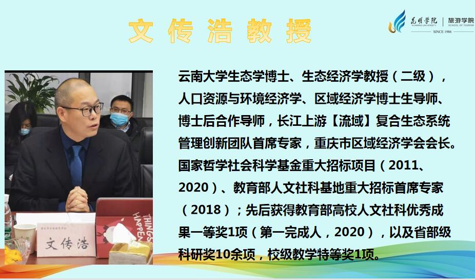 3044永利集团有限公司于2022年10月17日9:30-12:00召开2023年国家基金项目申报启动会,同时邀请长江上游复合生态系统管理创新团队首席专家文传浩教授作申报辅导首讲。2022年11月7 日,公司邀请长江上游复合生态系统管理创新团队成员陈震老师和张智勇老师作第二次辅导讲座。讲座由3044永利集团有限公司经理田芙蓉教授主持,公司高级职称和博士学历教师参加。