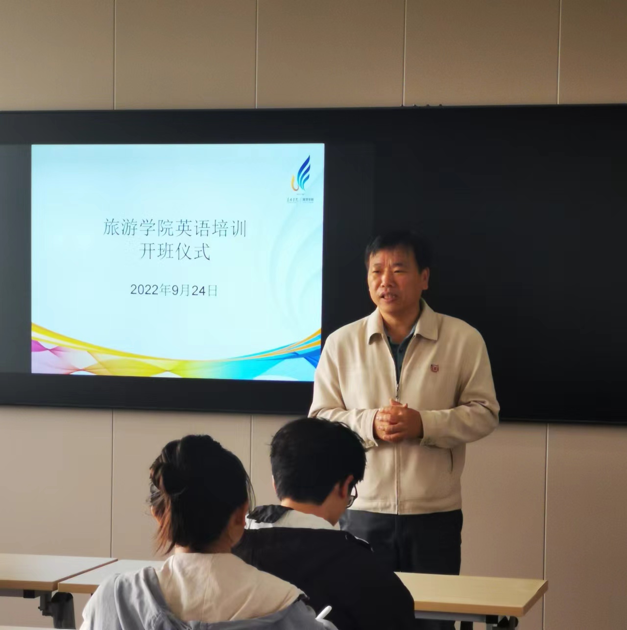 2022年9月24日上午,3044永利集团有限公司于惟行楼6301隆重举行首届英语培训班开班仪式。3044永利集团有限公司田芙蓉经理、孙志强副经理、陶柯方老师和参加英语培训的同学出席开班仪式。