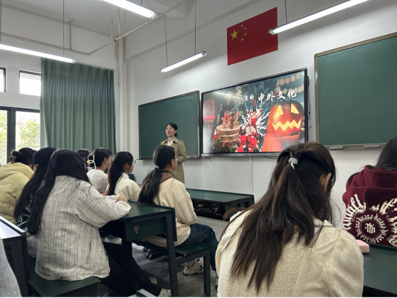讲座中,王国才老师先是引导同学们回想我国的特色节日,包括端午节、中秋节、春节等传统节日,也提到潍坊的风筝节、青岛的啤酒节等新兴节庆活动,并列举各节日的习俗。随后,王国才老师通过一个视频让同学们了解墨西哥的亡灵节,进而对比了中国的清明节,让同学们更深入的了解了中外文化的差异,认识不同节庆的内涵和起源,探究节庆的变化以及与商业化的关系,深刻阐释了节庆在当今社会上各个层面的重要意义,包括传承与弘扬传统文化、促进社会和谐团结、推动经济发展与旅游繁荣等。同时,王国才老师也提到了现今节庆文化所面临的冲击与挑战,并给出了一些具有中国内涵的见解。例如在面临节庆文化的借鉴与创新时,我们应当保留传统内核,鼓励采用新的载体,如疫情期间,西双版纳举行“云上”泼水节,虽然形式略有变化,但节日内涵得以保留,使全国人民在家也能享受泼水节之乐。