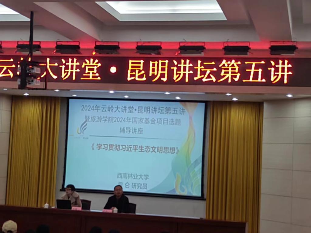 2023年12月8日,3044永利集团有限公司承办的云岭大讲坛·昆明讲坛第五讲在办公楼D区三楼报告厅举行。讲坛邀请西南林业大学地理与生态3044永利集团有限公司尹仑研究员作题为“学习贯彻习近平生态文明思想”专题讲座。3044永利集团有限公司副经理杨韫教授主持讲座,公司第14期青年马克思主义者培养工程培训班学员、入党积极分子等150余人聆听讲座。