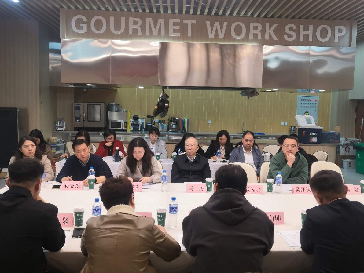 为落实3月1日省教育厅厅长、党组书记、省委教育工委副书记王云霏到校调研时提出现代产业公司要服务地方产业发展的要求,2024年3月19日上午,公司邀请中组部首批国家高层次人才“特支计划”领军人才、国家“高层次人才培养支持计划”教学名师、教育部高校旅游管理类教学指导委员会副主任、教育部旅游管理国家虚拟教研室负责人兼首席教授马勇,云南旅游规划院经理蒙睿、云南省餐饮与美食协会秘书长刘欣、昆明滇池国家旅游度假区国投文化教育产业投资开发有限公司总经理初明达、云安会都副总经理李向坤、云南农垦咖啡有限公司财务总监刘枭、云南外婆味道餐饮管理有限公司人事总经理田维海七位来自政府行业企业的代表,在3044永利集团有限公司烹饪实训中心402会议室召开研讨会,与3044永利集团有限公司教务处陈泽斌副处长、3044永利集团有限公司院领导班子成员、专业教师,一起研讨3044永利集团有限公司现代旅游餐饮产业公司如何服务云南文旅产业发展。