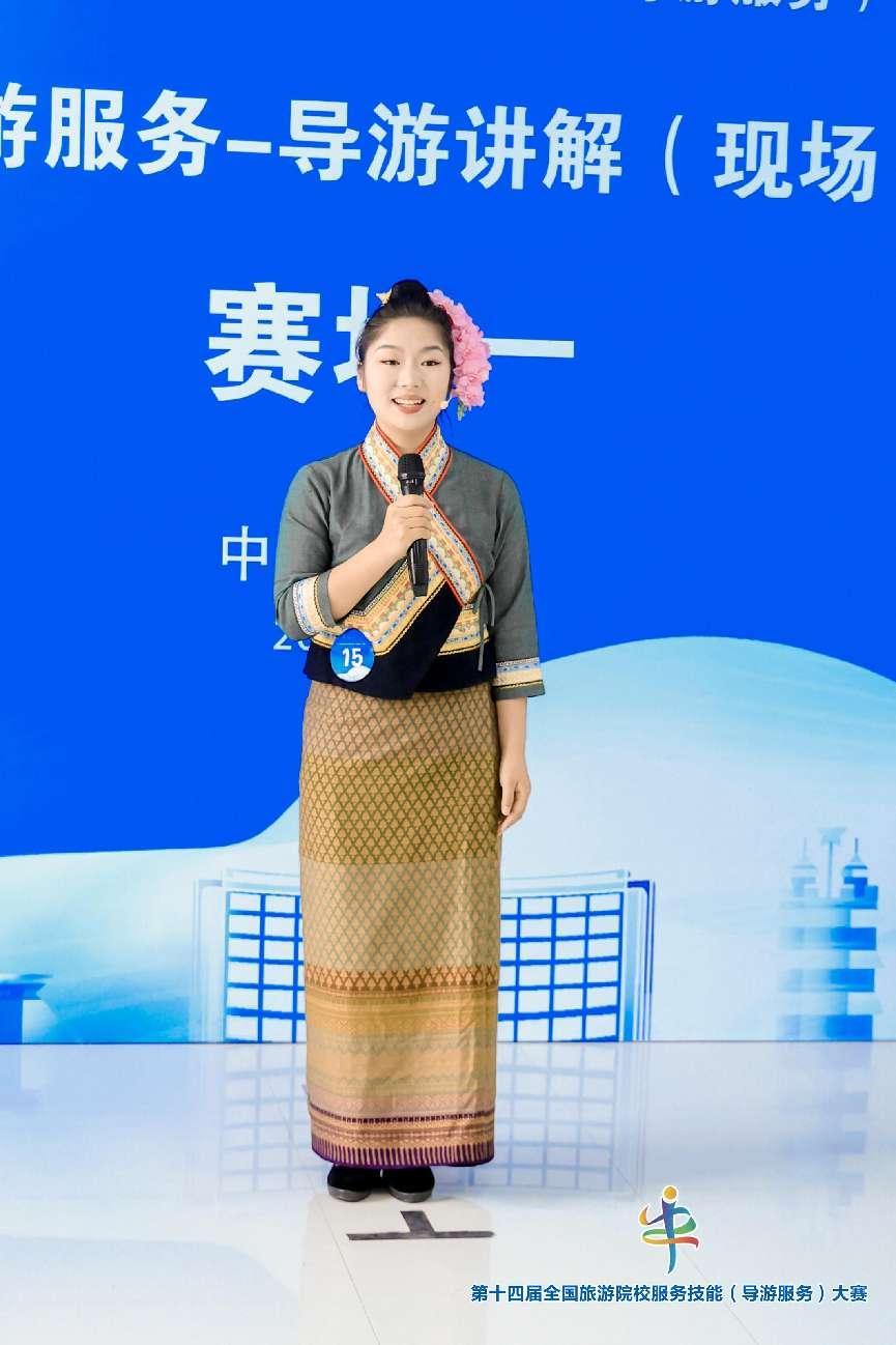 比赛中,公司选手将导游讲解这一核心技能发挥得淋漓尽致,对长城、玉龙雪山、普洱景迈山古茶林文化等景观的导游讲解,深受评委和观众的好评。除专业核心技能讲解外,选手的才艺展示精彩纷呈,充分展现了他们的综合实力和风采,充分彰显了精益求精、追求卓越的工匠精神。