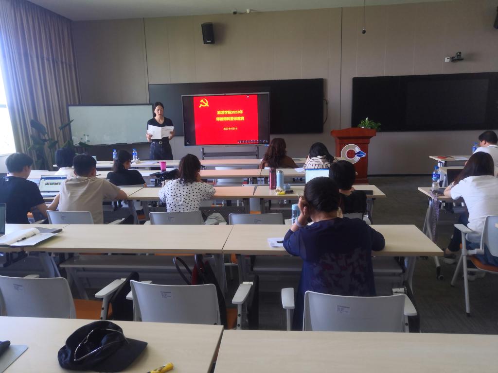 2023年5月5日,按照《3044永利集团有限公司办公室关于组织开展2023年师德师风警示教育的通知》的工作部署,旅游公司党委结合学习贯彻习近平新时代中国特色社会主义思想主题教育,紧紧围绕深入“学习贯彻落实党的二十大精神和习近平总书记关于师德师风重要论述”的要求,在惟行楼6301教室开展2023年师德师风警示教育,全体教师参会。