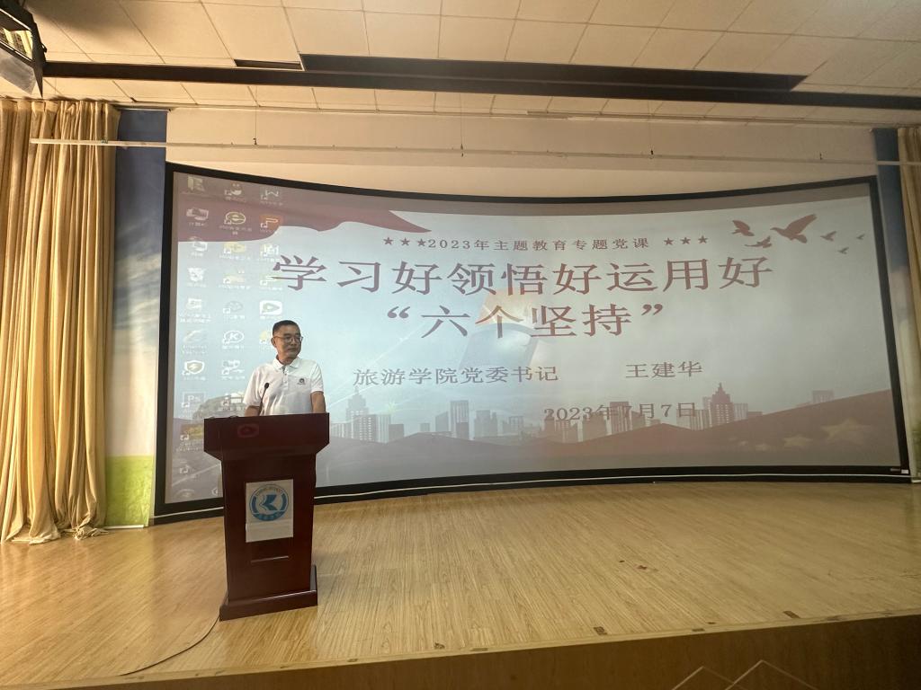 2023年7月7日,按照公司主题教育要求,旅游公司党委书记王建华以“坚持用习近平新时代中国特色社会主义思想的世界观方法论指导工作推动发展”为主题,为公司师生讲授专题党课。