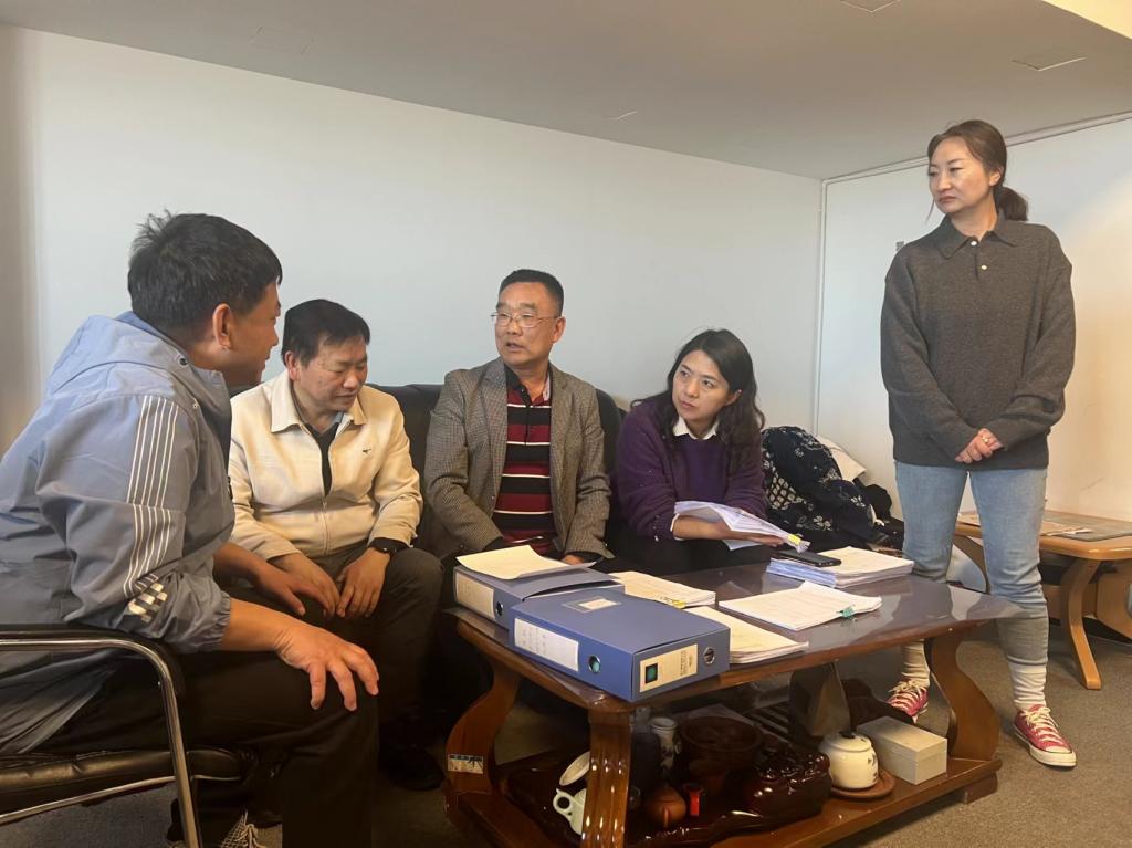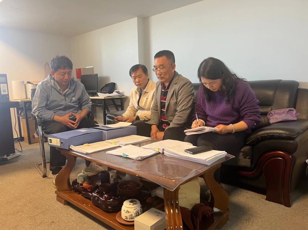 公司领导听取杨春雷2023年实验室采购及收支情况报告,查阅了一年来原材料采购入库和物料使用领取材料及其他台帐材料。
