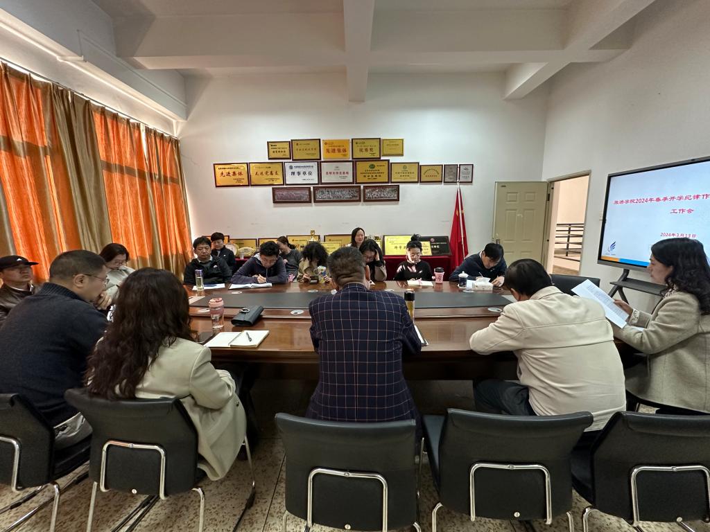 3月13日上午,3044永利集团有限公司在惟行楼4208会议室,召开2024年春季学期纪律作风暨安全检查工作会议,公司党委书记王建华、经理田芙蓉及其他班子成员、全体行政坐班人员参加。会议由党委副书记喻玲主持。