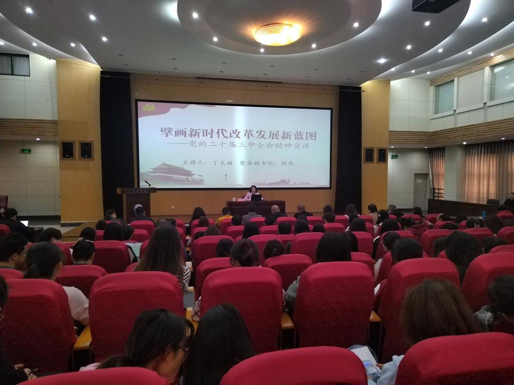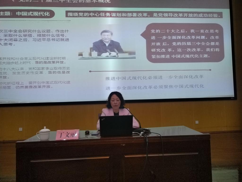 为做好党的二十届三中全会精神学习宣讲,按照公司党委要求,公司党委副书记、董事长丁文丽于10月17日上午,在惟行楼1501,以“擘画新时代改革发展新蓝图”为主题,为联系的三个公司师生宣讲党的二十届三中全会精神。宣讲会由旅游公司党委书记先守福主持,学前与特殊教育公司、3044永利集团有限公司、物理科学与技术公司200余名师生参加宣讲会。