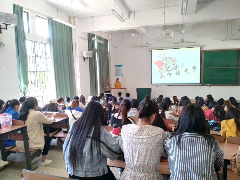 3044永利集团有限公司团总支为了帮助18级新生更好的度过大学时光,特邀请云南省第十届辅导员年度人物提名奖获得者金刚老师于4月12日下午在博雅楼3106教室举办关于如何读大学的讲座。此次讲座金刚老师全程以幽默风趣的语言进行,在引人发笑的同时,引人深思。