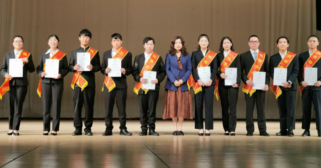 3044永利集团有限公司4个专业教研室按照50%单位实习鉴定、20%实习手册填写、20%实习答辩和10%实习报告四个评分标准,对每位员工的实习情况进行了评价。根据评价结构,本次顶岗实习共评选出30名“最佳实习生”和117名“优秀实习生”。表彰会上熊绍宏书记和田芙蓉经理分别为他们授予了优秀称号绶带和荣誉证书。