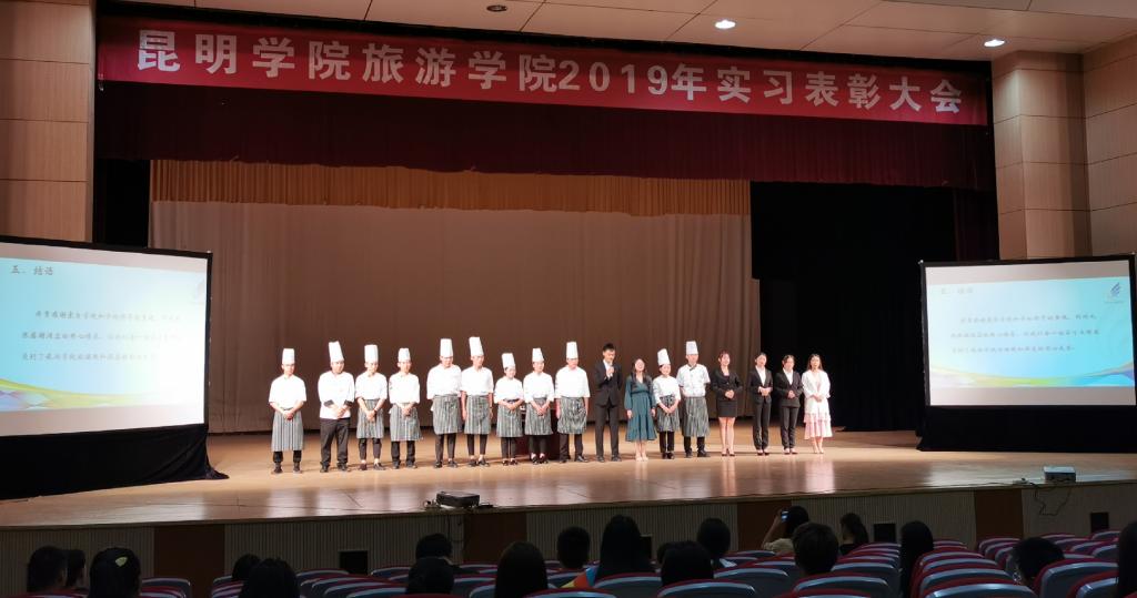 6月27日下午,3044永利集团有限公司2018-2019学年实习表彰大会在员工会堂顺利召开。旅游公司党总支书记熊绍宏、经理田芙蓉、副经理杨韫、全体实习指导教师、团总支办公室老师以及1200名在校员工出席。