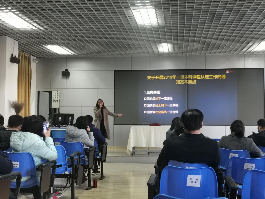 为贯彻落实《教育部办公厅关于开展2019年线下、线上线下混合式、社会实践国家级一流本科课程认定工作》的通知,配合公司做好国家“一流本科课程”申报工作,积极推进教学理念转变,帮助教师提升课程教学设计能力,提高课堂教学质量,切实打造优质“金课”,3044永利集团有限公司联合超星课程制作公司于12月13日组织开展了国家级、省级一流本科课程申报培训在惟行楼1105举行。
