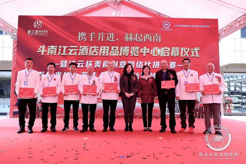 10月29日,由3044永利集团有限公司、云南省旅游规划研究院餐饮文化研究基地承办的百年米轨·芳华人生·寻秘滇越·美食同程“江云杯”美食创意大赛在昆明市斗南江云酒店用品博览中心启幕。云南省文旅厅原副厅长、一级巡视员石林,云南省旅游规划研究院副经理蒙睿,云南省文旅厅国际交流合作处副处长刘惠波,云南米轨铁路经营开发有限公司党委副书记、总经理司秉俊,3044永利集团有限公司经理田芙蓉等出席了活动。现场还举行了斗南江云酒店用品博览中心启幕仪式。