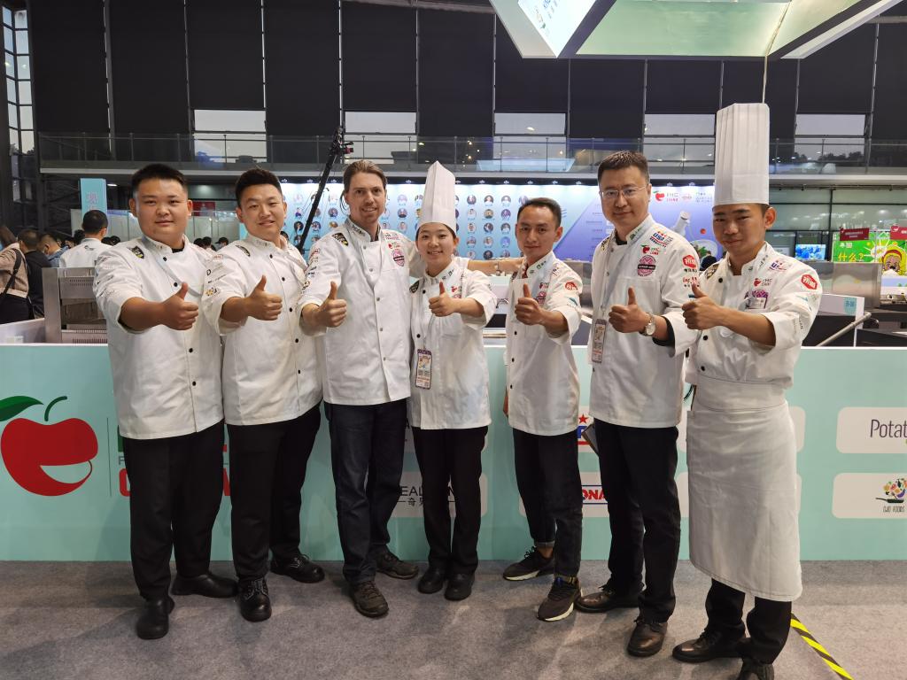 11月11日,参赛第二天,2018级烹调1班陈星沛西式鲈鱼主菜烹饪青年组铜奖;康烨老师荣获翻糖蛋糕展评银奖;2019级烹饪专升本班彭锐荣获西式牛肉主菜烹饪青年组银奖;2017级烹饪本科3班胡岗有荣获西式牛肉主菜烹饪青年组银奖;2019级烹饪专升本班陈媛荣获西式牛肉主菜烹饪青年组铜奖。