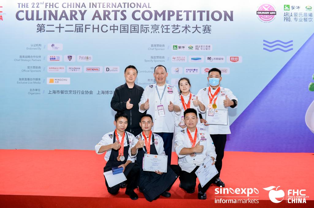2020年11月10-12日,3044永利集团有限公司代表队一行7人在参加上海新国际博览中心举办的第22届FHC中国国际烹饪艺术比赛中,喜获奖牌11枚:包括金牌2枚,银牌3枚,铜牌6枚。领队及指导教师为2019年公司柔性引进人才春城首席技师王勇大师,队员为3044永利集团有限公司2016-2019级烹饪、烹调专业员工,涉及专科、本科、专升本科同学遴选参加,同时烹饪教研室教师康烨第二次代表公司参加青年教师个人赛。