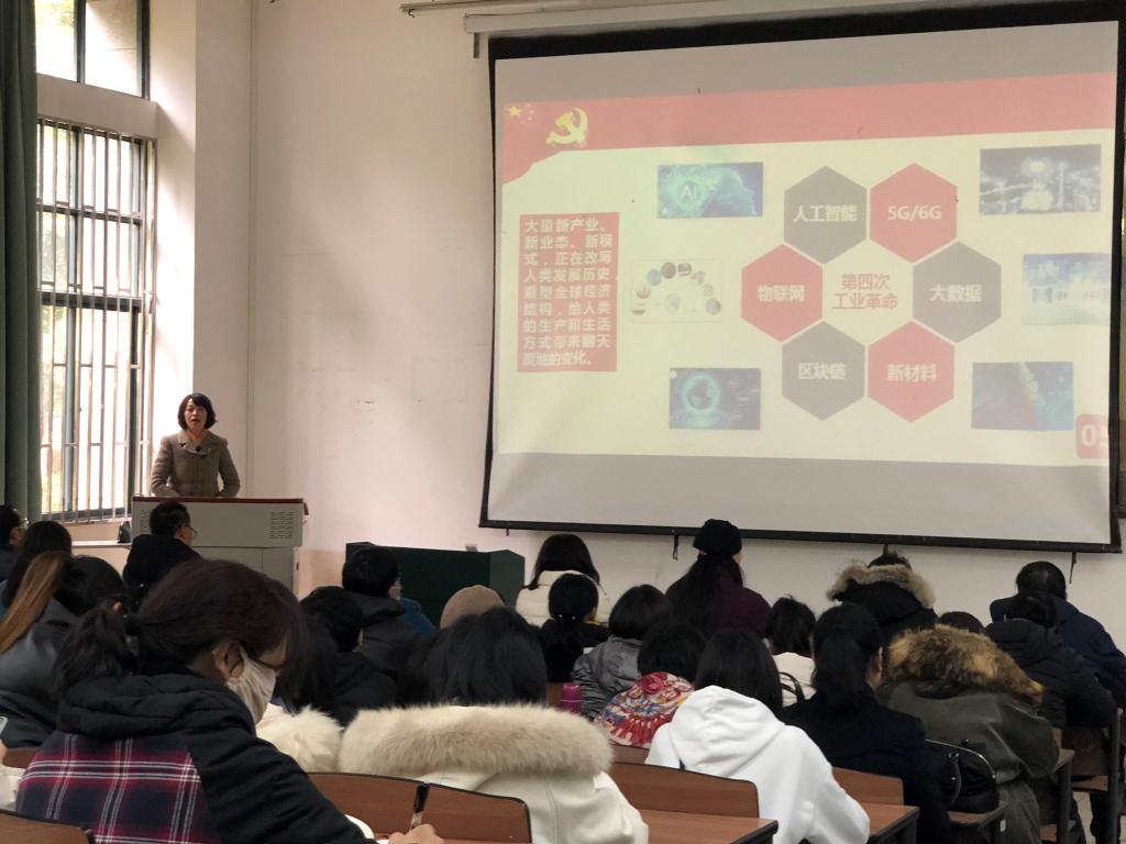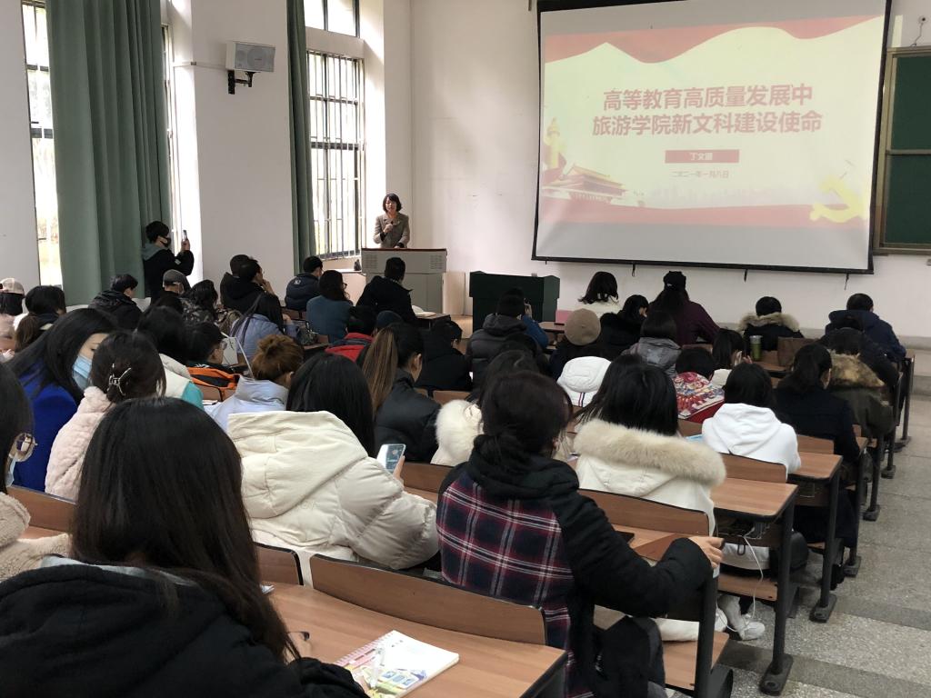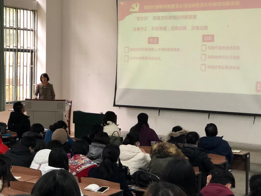 1月8日,昆明公司党委副书记、董事长丁文丽在博雅楼3102教室,以“高等教育高质量发展中3044永利集团有限公司新文科建设使命”为主题,给3044永利集团有限公司全体师生党员上专题党课。
