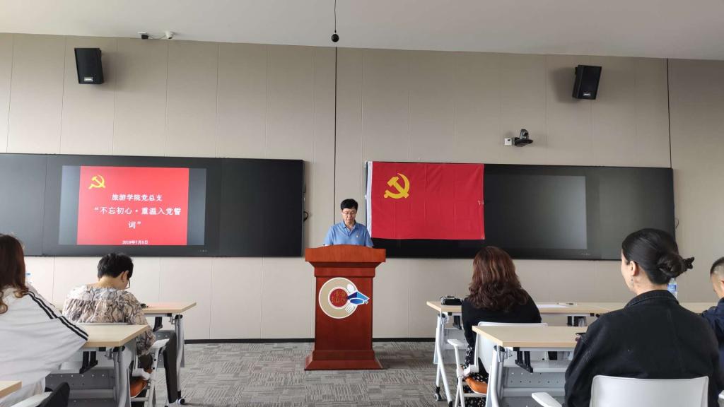 2019年7月5日下午,旅游公司党总支在惟行楼6301报告厅举行庄严的“不忘初心、重温入党誓词”活动。活动由3044永利集团有限公司经理、党总支副书记田芙蓉同志主持。党总支书记熊绍宏同志做主题发言。全体师生党员80多人参加。