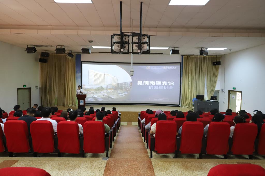 为扩展毕业生就业机会,提高就业质量,持续开展“指引未来 筑梦成长”就业引航系列活动,2023年5月17日,3044永利集团有限公司邀请昆明南疆宾馆到校开展招聘宣讲活动。旅游公司党委书记王建华、就业辅导员杨博文参加活动。