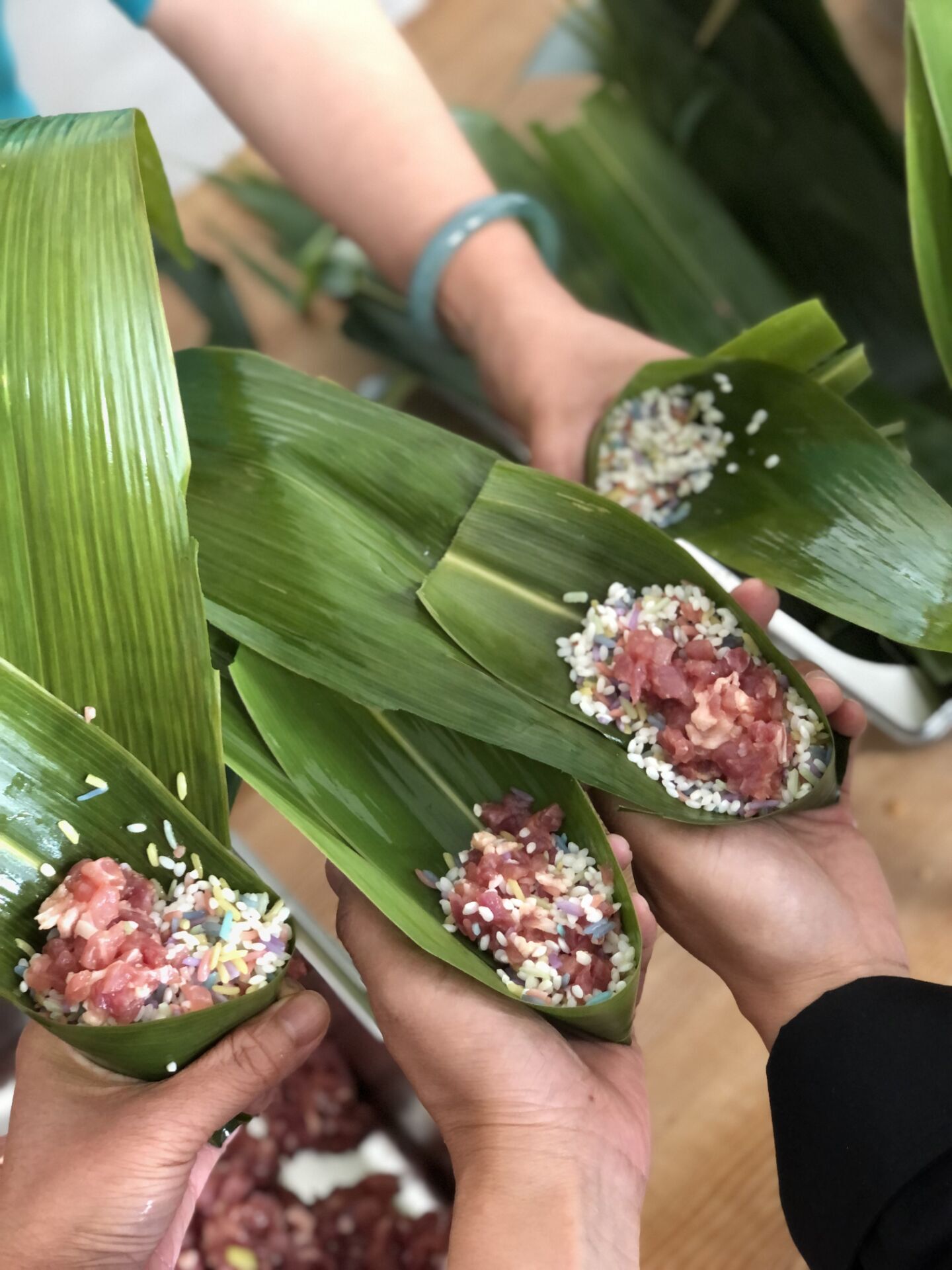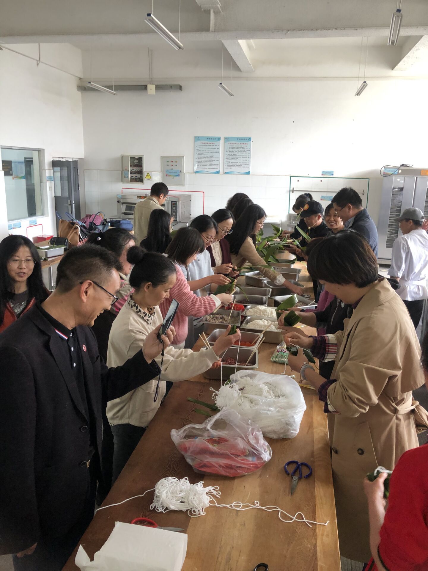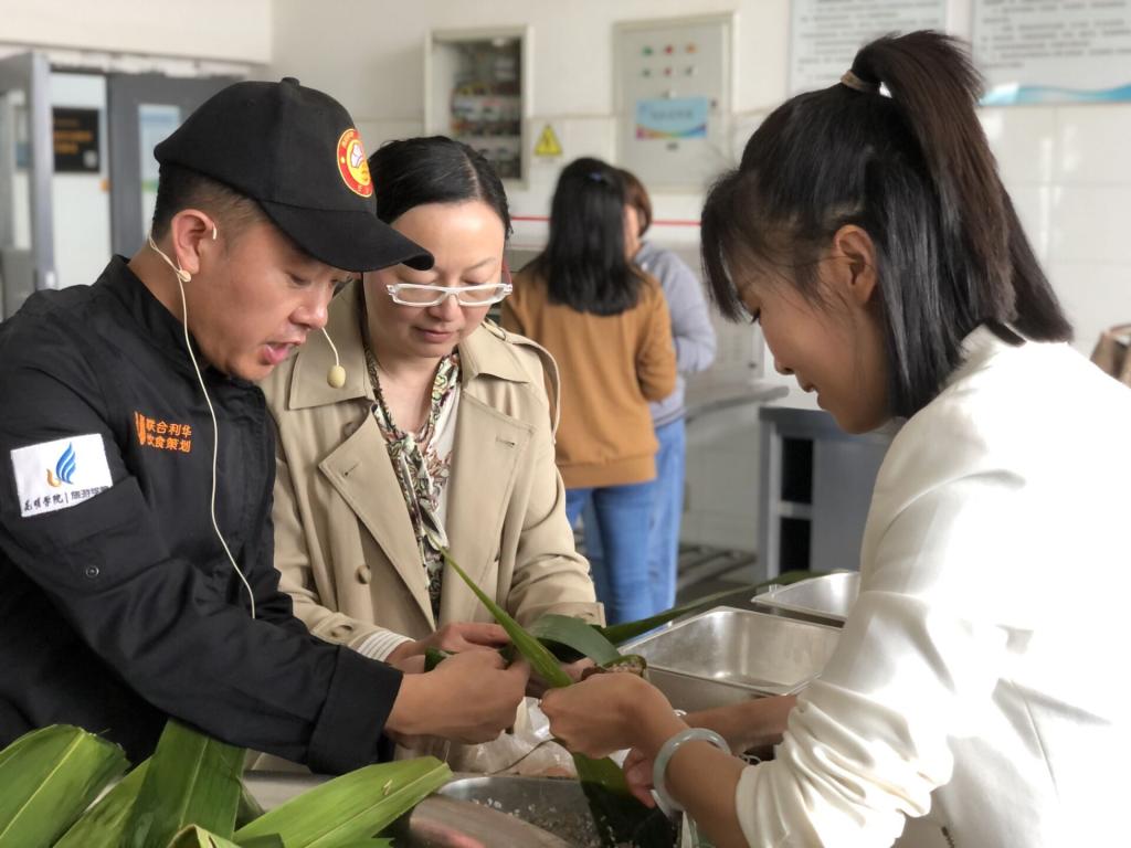 随后,3044永利集团有限公司全体教师利用公司分工会提供的包粽子原料,自己动手,在刘福灿大师的讲授带领下,学习亲手包粽子。现场一片欢声笑语。
